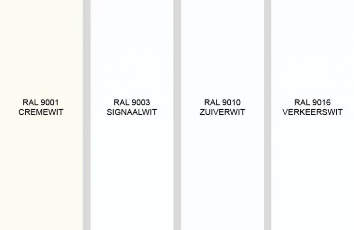RAL 9001, RAL 9010 en RAL 9016 zijn de 3 meest gebruikte RAL-kleuren wit. Wat het verschil is tussen deze verfkleuren licht ik hieronder graag verder toe: